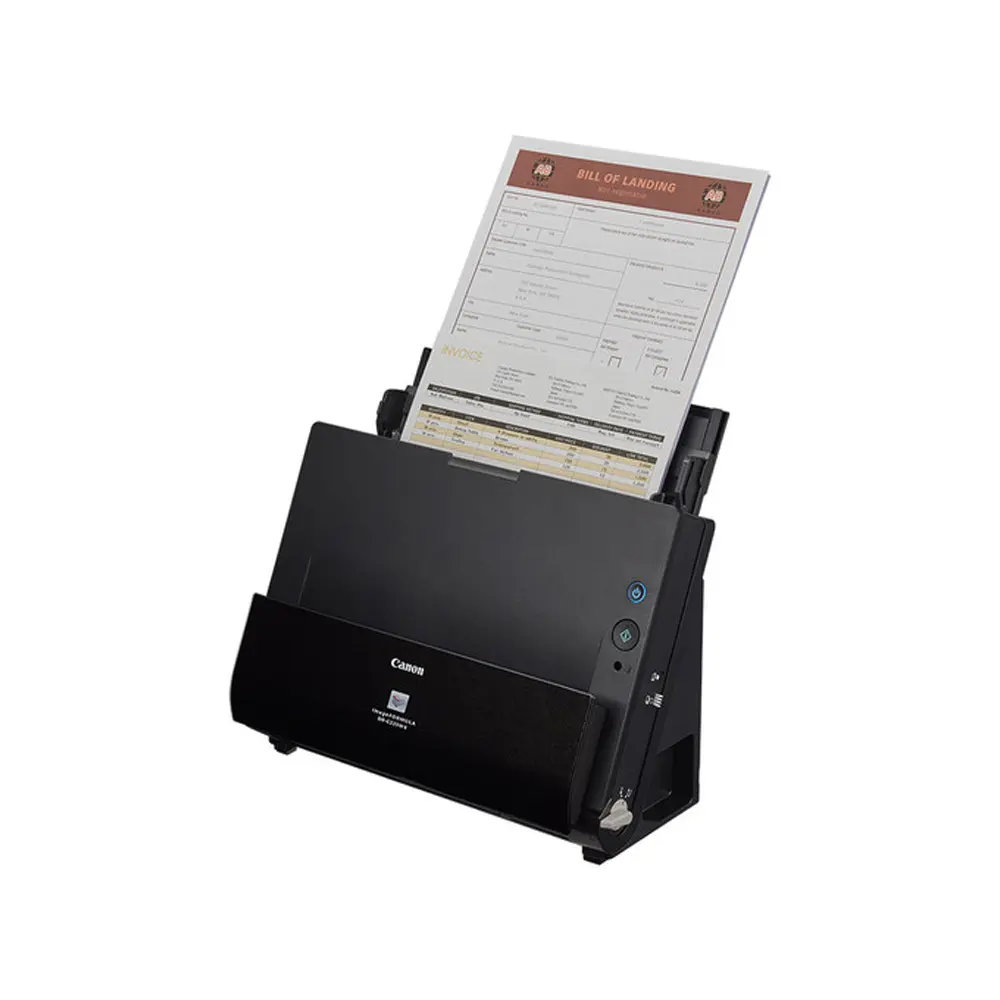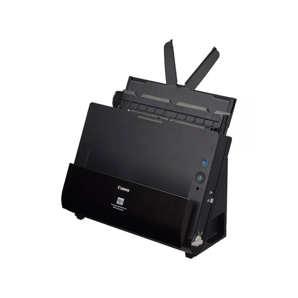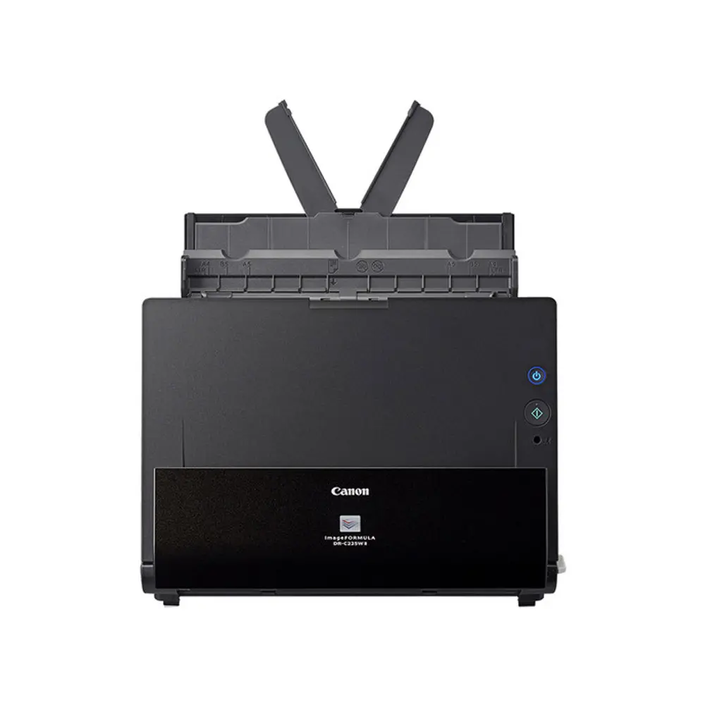 Scan documents with the Canon imageFORMULA DR-C225W II Wireless Document Scanner. With Wi-Fi connectivity, you’ll be able to scan a wide variety of documents and have it exported to your computer, smartphone, tablet, and even cloud apps wirelessly. Featuring an optical resolution of 600 dpi, the DR-C225W II provides high image quality along with the ability to scan up to tabloid-sized documents in folio mode or 8.5′-wide sheets using the 30-sheet ADF at up to 25 ppm. There are also features to help improve character legibility as well as straighten and removing shadows from images. A single click allows for the adjustment of multiple features to easily create an optimal scanned image using the intuitive front-side-forward, top-up item feeding. Save your scans in PDF, PDF/A, JBPG, TIFF, PPTX, BMP, or PNG file formats, and you can scan in color, grayscale, or monochrome. The bundled Canon CaptureOnTouch software also enables users to configure routine scan jobs for quick and easy one-touch access.
